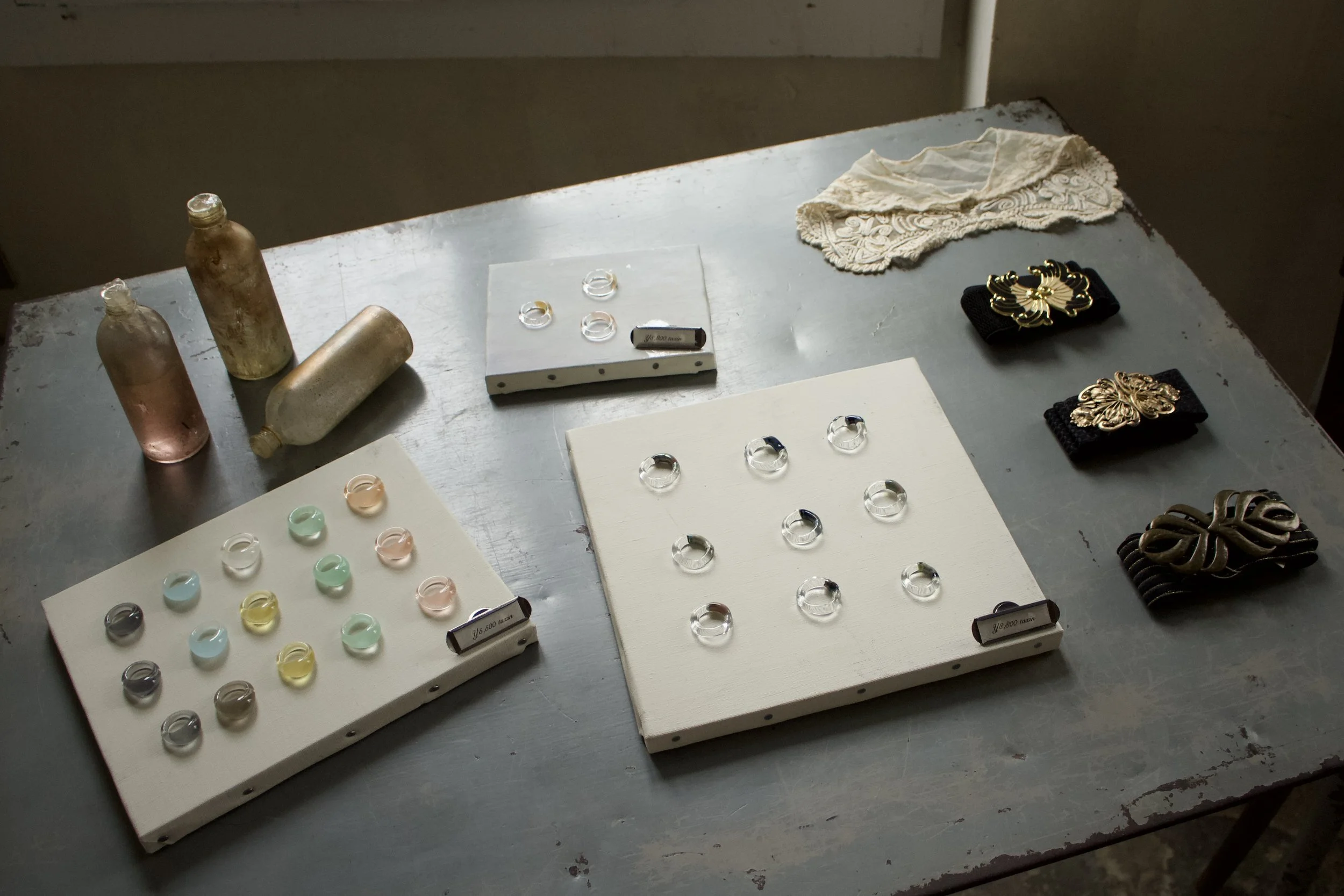 デザイナー自ら1点ずつお仕上げしているガラスリング•陶器リングもお手に取ってお求めいただけます。